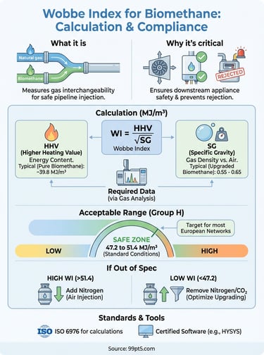 Understanding how to calculate wobbe index becomes critical when you're blending biogas streams or adjusting your upgrading process to meet network specifications.