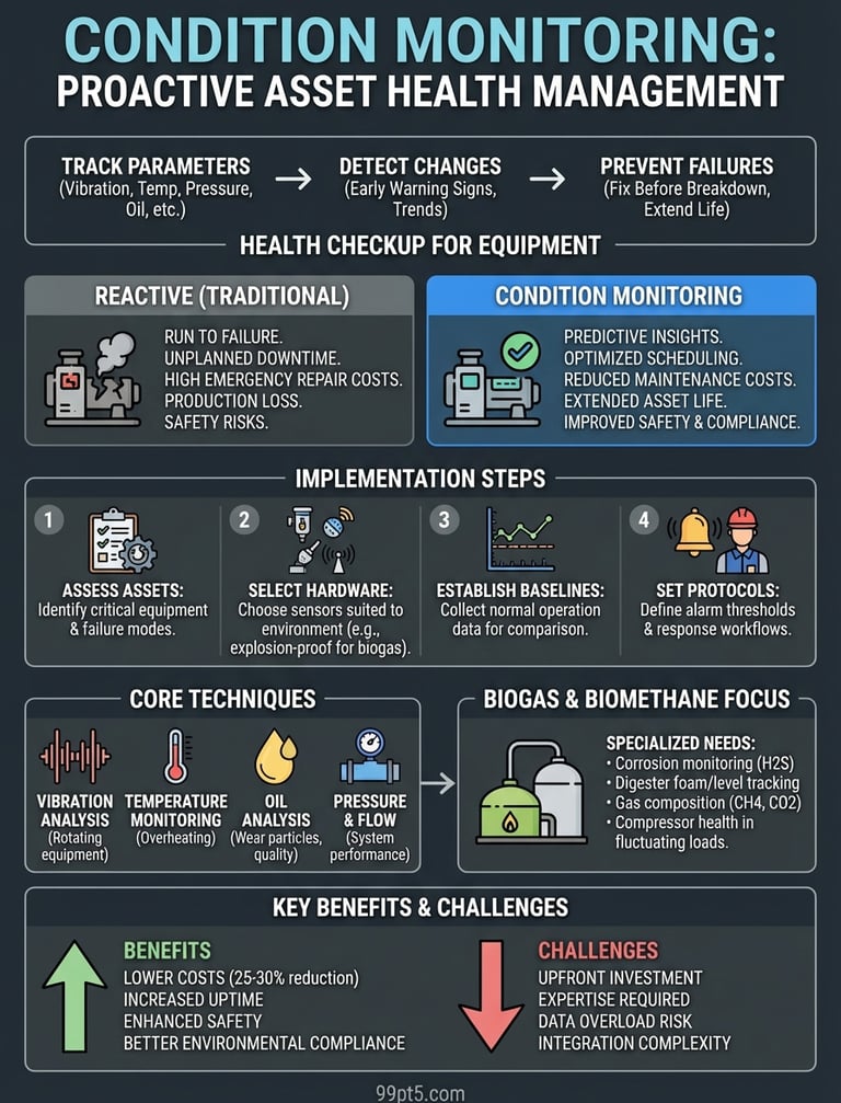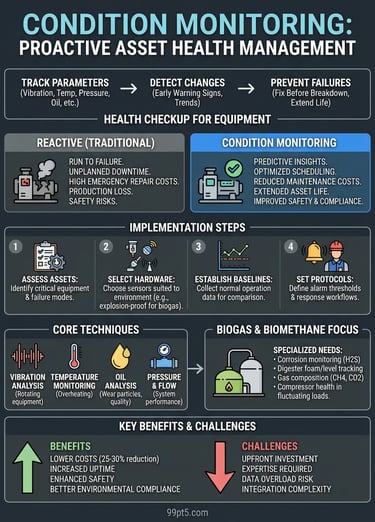 What is condition monitoring? Explore its definition, how it works, key techniques, and benefits for industrial equipment, including biogas systems.