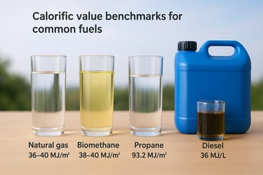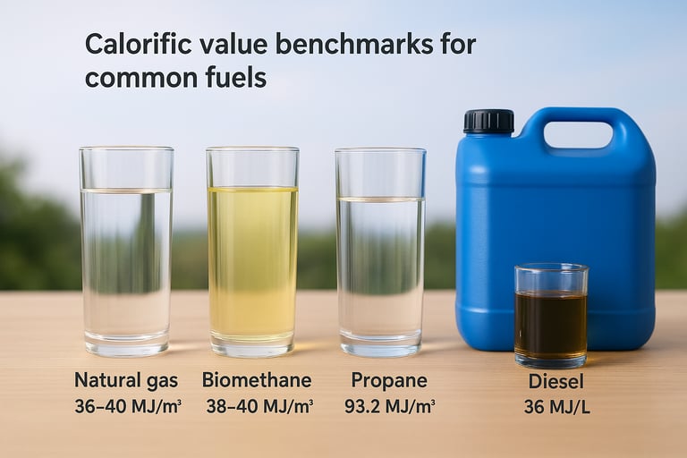 Calorific value benchmarks for common fuels