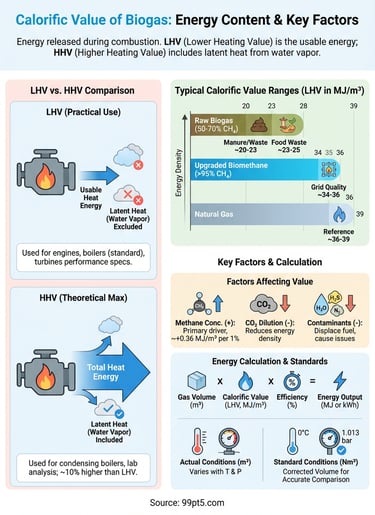 Payment structures in power purchase agreements follow the same energy-based logic. When you feed biomethane into a generator, the electricity output depends on how much energy each cubic meter contains. Lower calorific values force you to process more gas to hit the same megawatt-hour targets, increasing your compression costs, maintenance intervals, and wear on equipment.